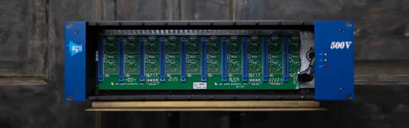 The API Model 500VPR is powered externally by a tri-polar power supply and is designed to accept API standard format 5.25″ X 1.5″ modules. The 500VPR is internally wired for PIN 2 hot, and comes with the API L200PS. The input/output jacks are both XLRs. The 500VPR can hold up to ten API modules. NOTE: Older API 560A series equalizers used pin 15 for a “direct output” and must be disabled on the 560A circuit board edge connector by cutting a trace. This will eliminate 48 volts from damaging the 560A series equalizers.There are some minor scratches on face plate but all ten module bays and power supply are fully functional.Power supply (API L200PS) is included with the 500VPR.Unit is currently in Calgary, shipping may vary by location — message for exact quote.Buyer responsible for any import duties or taxes.