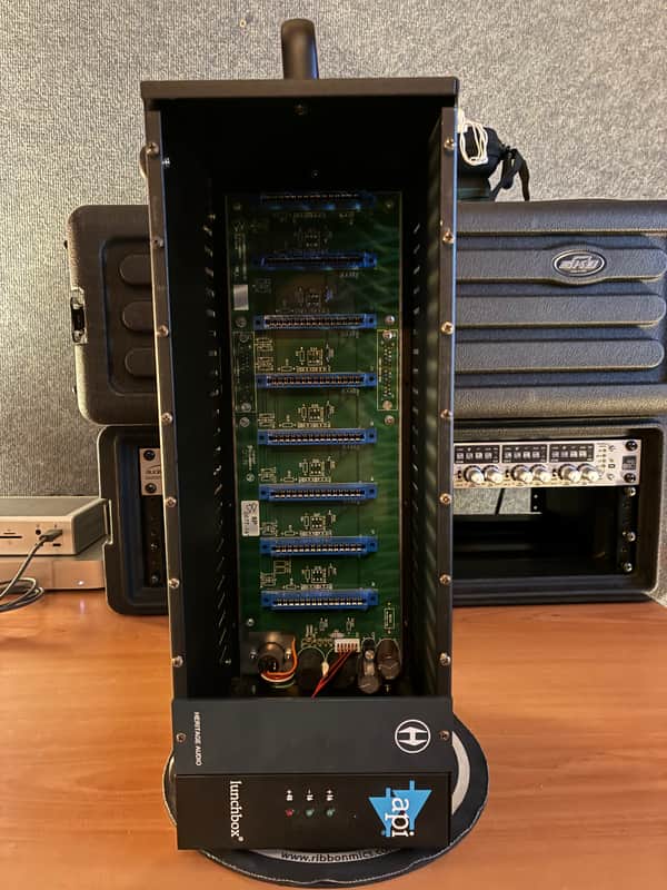 Selling an API 500-8B lunchbox in excellent condition, used only in a personal studio environment.There are a few minor cosmetic marks on the top from rack use (visible in the photos). The bottom screw hole of the second slot may need re-threading or a slightly larger screw (a larger screw is included).
