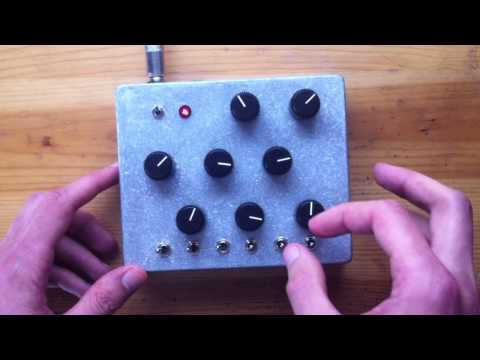 This is a maximal drone synthesizer capable of dense sounds and thick chords. Six oscillators modulate against each other. Each selectable as either full range, off, or low range. There is also a low pass filter and volume. A CV input allows you to power the device with control voltages from 0-5V for interesting automated power sag results.