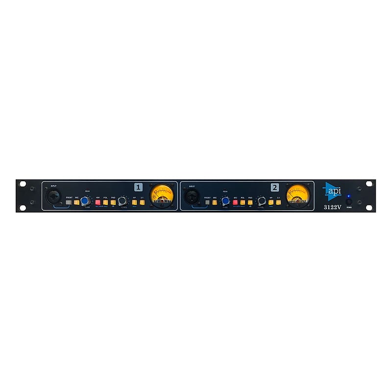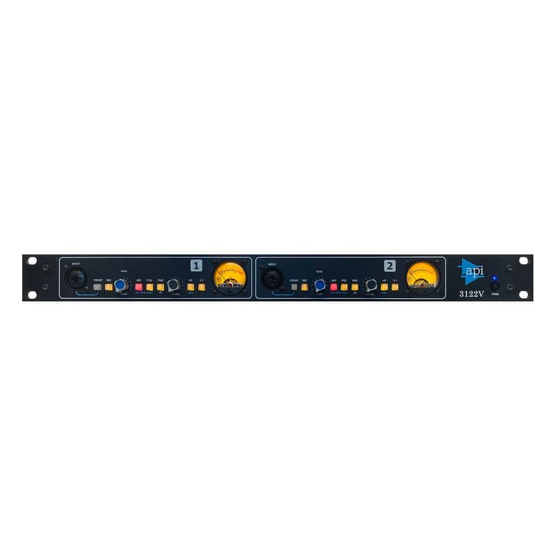 The new 3122V provides 2 channels of API’s signature analog sound and features the same legendary circuit design found in the 3124V and 3124MV, as well as the 312, 512V, and 512c mic preamps. In addition to the familiar combination of 2520 Op Amps and proprietary output transformers that give all API mic preamps that punch and massive headroom, the 3122V also includes front and rear panel XLR and ¼” inputs (conveniently selectable on the faceplate), a fixed-frequency HP filter, GAIN and the popular Variable Output Level control, as well as 48V, POL, and PAD. Rounding out the expansive feature set are the 3:1 Output Transformer Tap and 2 stunning analog VU meters with a separate peak LED.