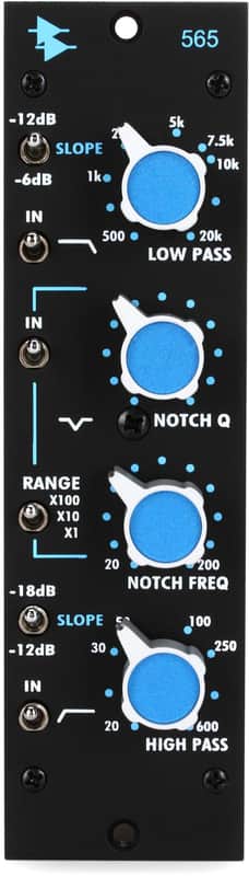 500 Series Filter Module with Highpass and Lowpass Filters with Slope Controls and Variable Notch Filter with Adjustable Q.