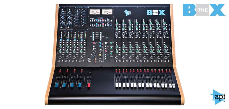 API THE BOX Project Recording and Mixing ConsoleBuilding on API's rich heritage of extremely high-quality recording consoles, THE BOX is a small-format recording/mixing console designed for professional project studios, home studios, and production facilities of all kinds. Optimized for the digital era, THE BOX handles all the functions needed for production not provided by most DAWs, including mic preamps, input signal processing, high-quality mix bus, cue sends with talkback, monitor control, and more, without the redundant capacities of larger consoles. Most importantly, THE BOX provides the legendary "all discrete" API sound in an efficient, cost-effective package.FeaturesTwo (2) input channels with mic/instrument/line preamp, HP filter, integral 550A EQTwo (2) input channels with mic/instrument/line preamp, HP filter, 500 slotTwo (2) compressors assignable to input channels or program bus with stereo linkSixteen (16) summing channels (20 channels during mix)Stereo program bus with master fader, insert, and external inputOne (1) stereo and (2) mono auxiliary sends/busesStereo cue send/bus headphone systemPFL, AFL, and solo-in-place solo modes with stereo solo busFull-featured monitor section that supports two stereo monitor systemsTalkback systemComprehensive rear panel connections with balanced inputs and outputsIntegrated power supply
