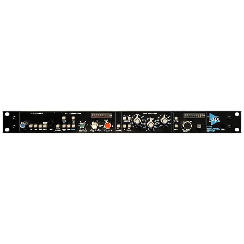 The best of all API worlds, all wrapped up in a one rack unit channel! The Channel Strip is a complete input module with mic pre, dynamics processing, precision EQ and output level control. With extensive signal metering, multiple balanced insert points and an output mute switch, The Channel Strip contains the best features of a large console input channel in a single rack space. It's the perfect choice for anyone looking for that high-performance API console sound. The result of thoughtful engineering, The Channel Strip includes everything needed to record an audio signal. It all starts with the famed 512c Mic Preamplifier, which includes the benefit of additional Mic, Line or Instrument input switching. Next is the 527 multi-mode Compressor with fully adjustable Threshold, Attack, Release, and Ratio controls on detented pots. The patented THRUST® circuit in the 527 gives your track the "in-your-face" punch that has made this circuit an award winner. Also included in The Channel Strip is probably the most recognized and revered API EQ of all time, the 550A three-band Equalizer with its switchable frequencies and 12dB of boost or cut. The 550A's High and Low frequency bands can be individually switched to be shelving EQs, and the "B.P. Filter" switch inserts a 50Hz to 15KHz bandpass filter. At the output of the unit is the 325 Line Driver, taken directly from API console designs with an output level pot and 10 segment meter. The meter can also be switched to show the output level of the preamp. Each of The Channel Strip's processing pieces can be switched in or bypassed individually, while a flip switch internally routes the compressor after the EQ if desired. Additional features include a sidechain input and the famous API 2520/transformer combination. Features API 512c Mic Preamplifier API 550A Equalizer API 527 Compressor API 325 Line Driver Complete patching facilities on rear panel Two ten segment LED VU displays Output clips at +30dBm Specifications Power Consumption, Quiescent: 28.2 Watts Size: 19" X 1.75" (1U) X 11.5" Deep Size (Boxed for Shipping): 23.25" X 6.5" X 16" Actual Weight: 10.81 lbs. Shipping Weight: 14.88 lbs.